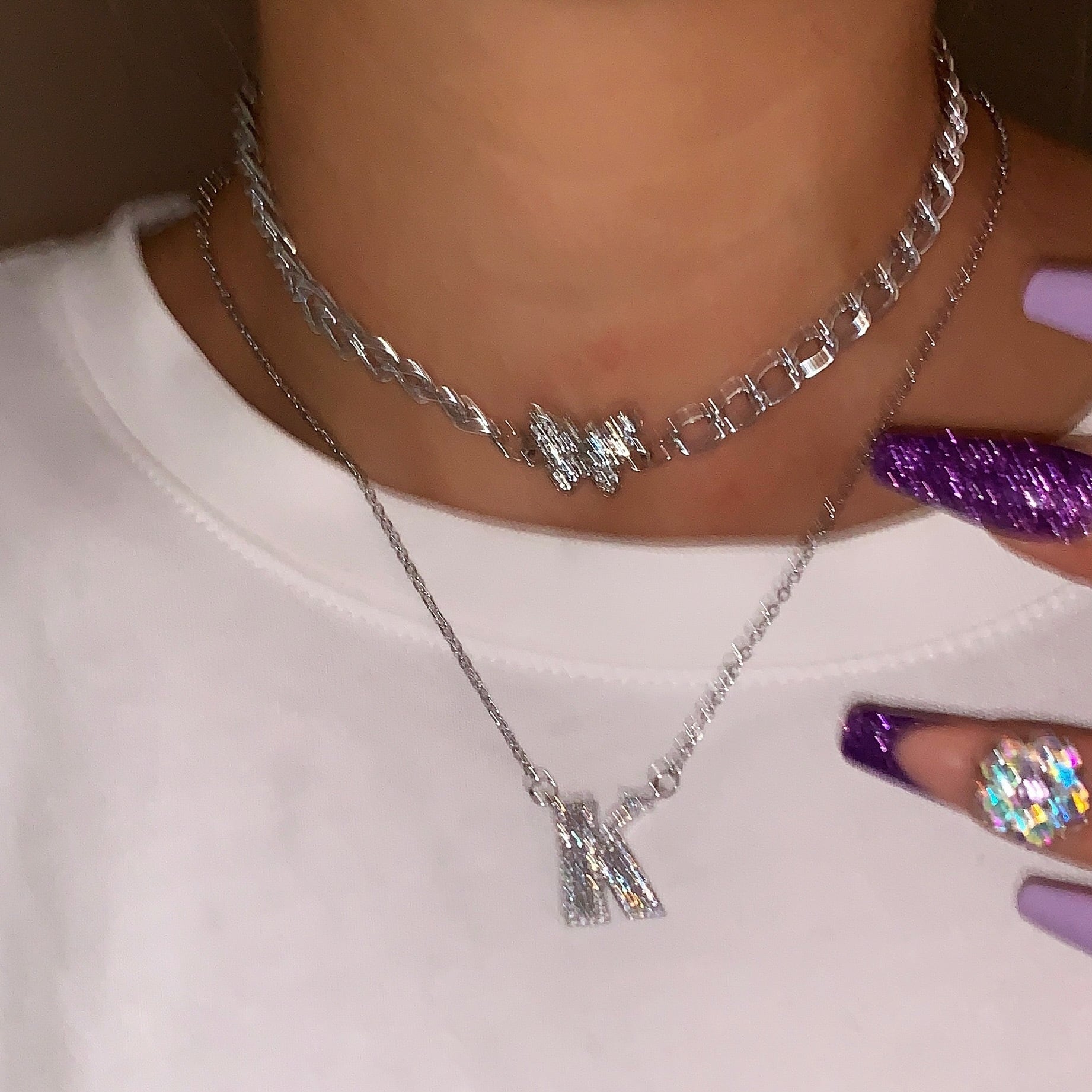 【nutsまゆりちゃん着|みちゃわちゃん着|AYAKAちゃん着】《Zircon》Crystal Initial ネックレス