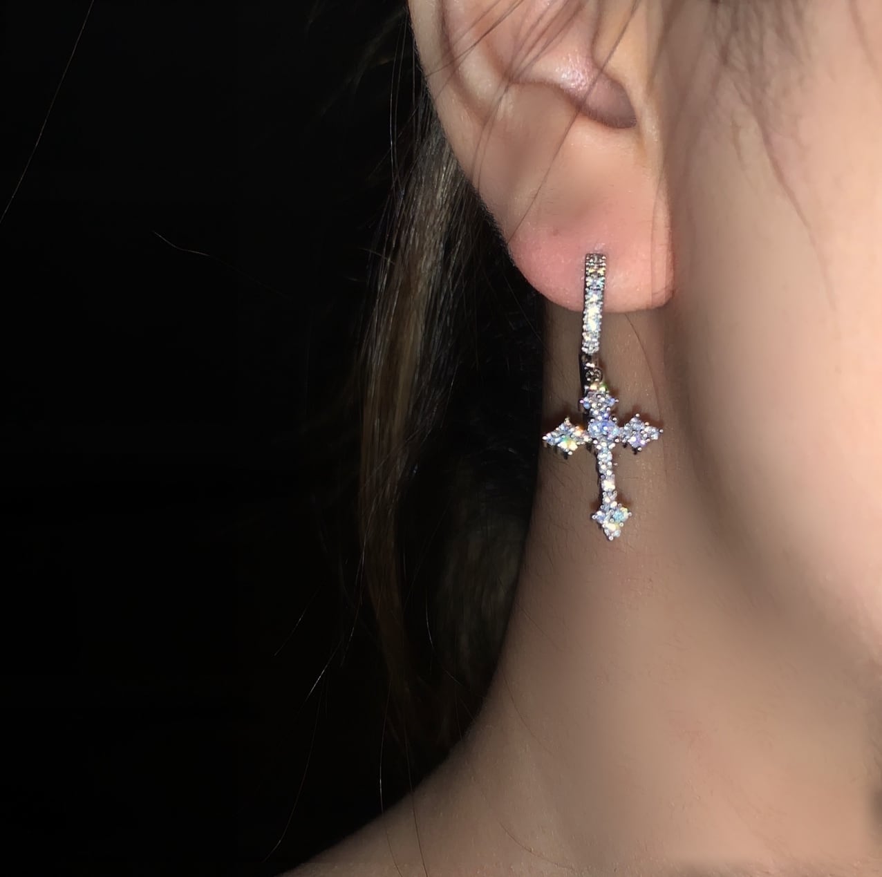 ▼再入荷《Brass|CZ diamond》ICY Cross Hoop ピアス/SIL