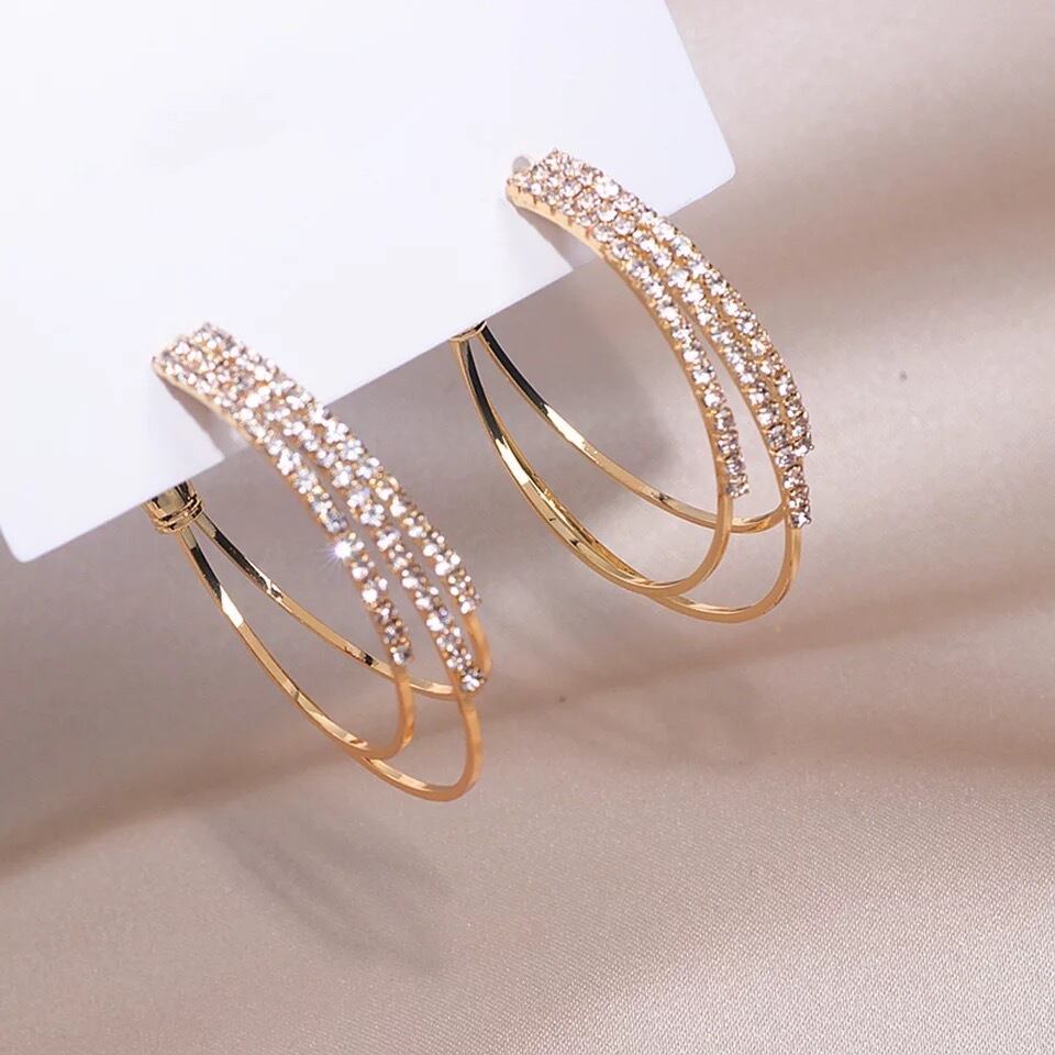 ▼再入荷Layered Crystal Hoop ピアス/GLD
