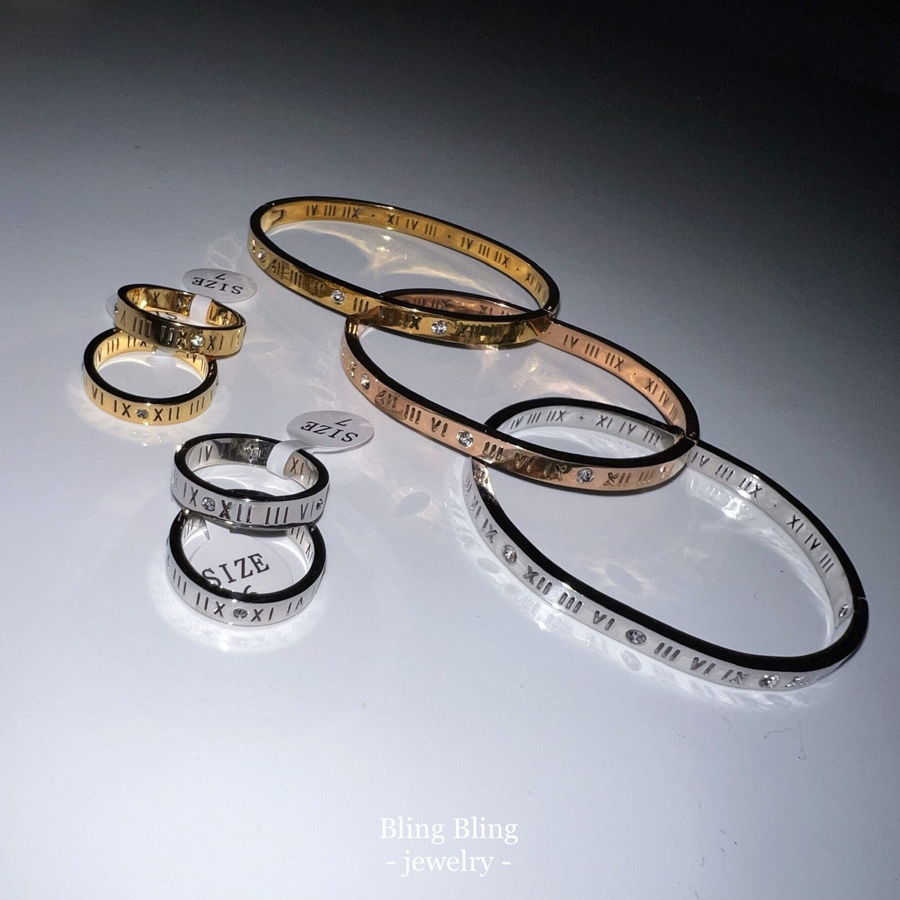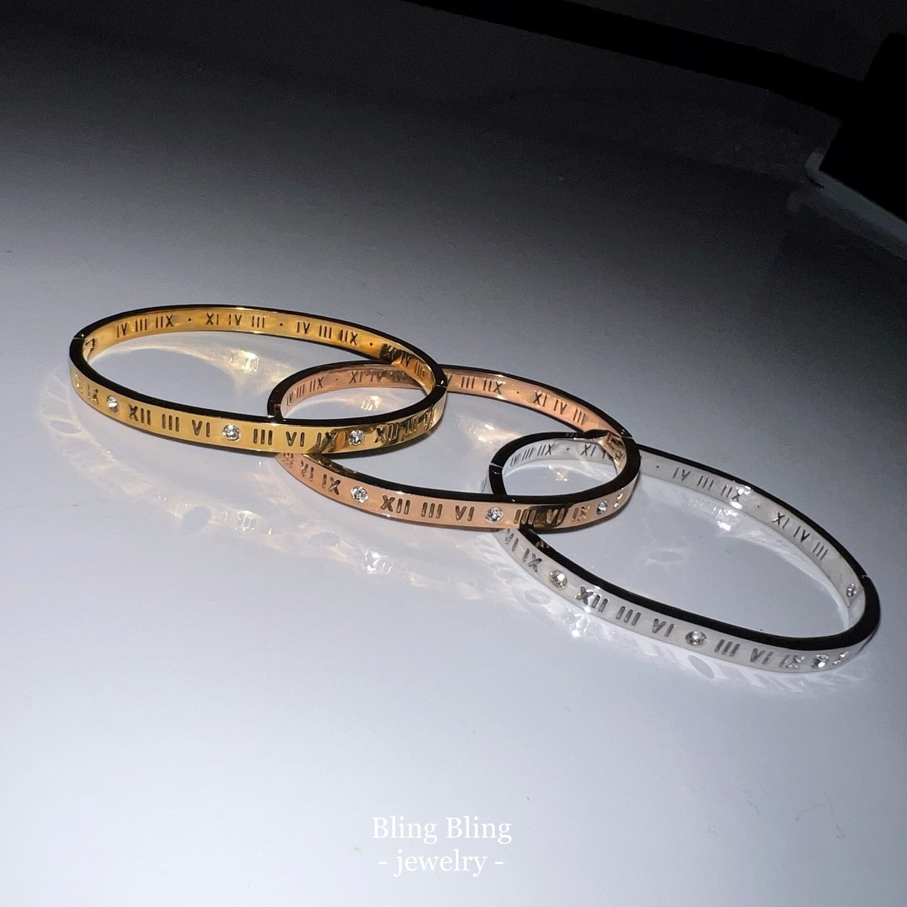 《Stainless|CZ diamond》Roman Number Hole バングル/SIL