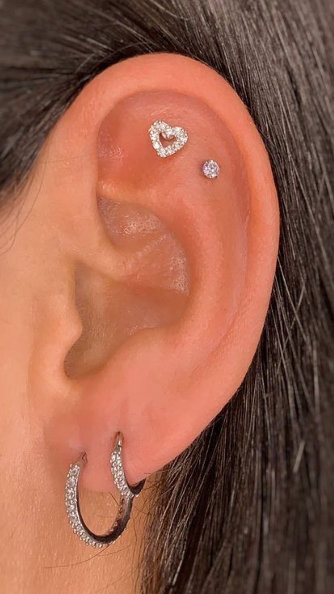 ▼再再入荷《2pcs》III Flower & Frame Heart 軟骨ピアス