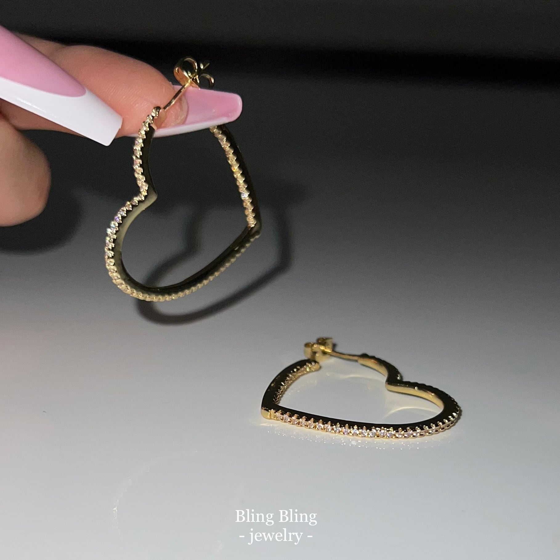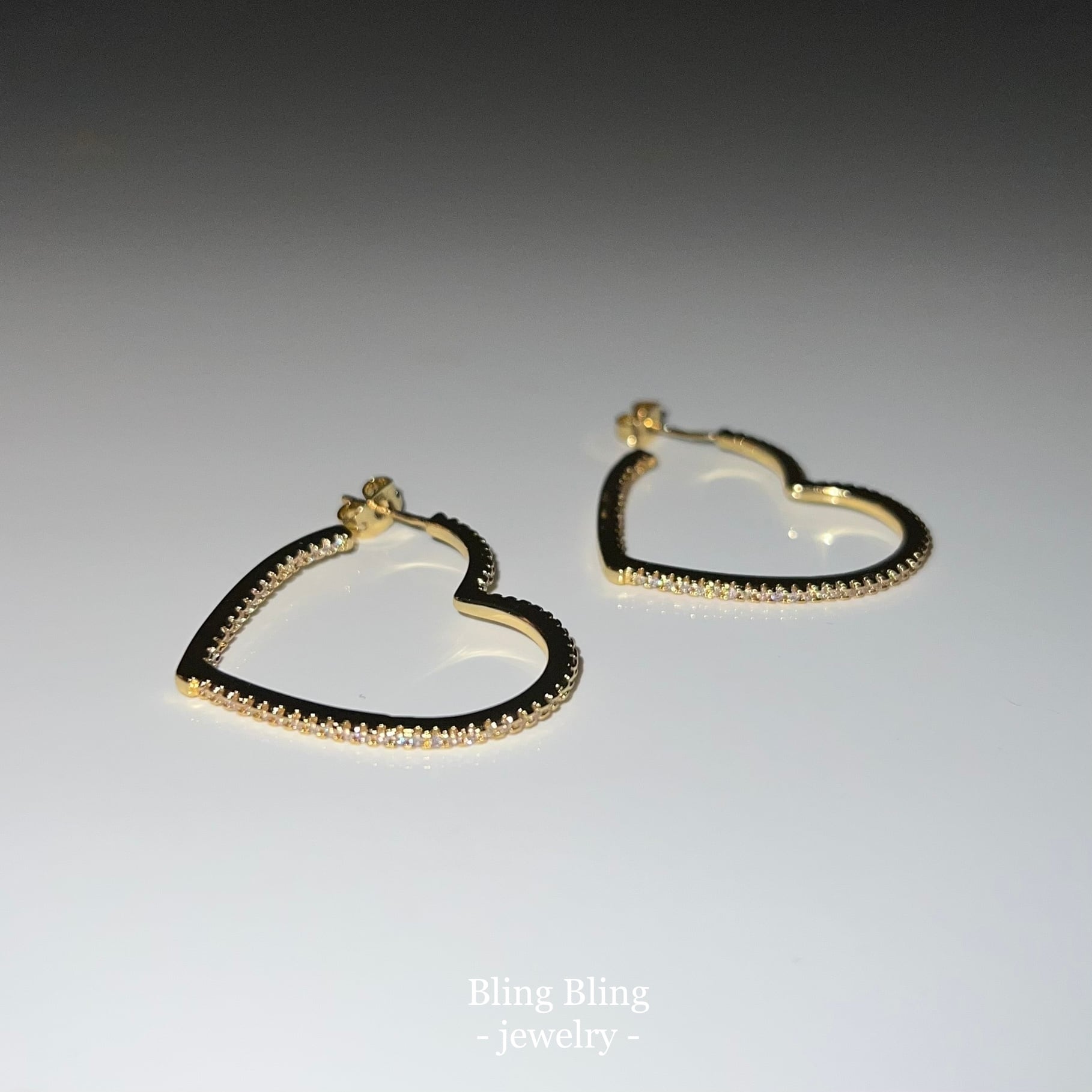 ▼再入荷《AAA CZ diamond》Heart Hoop ピアス