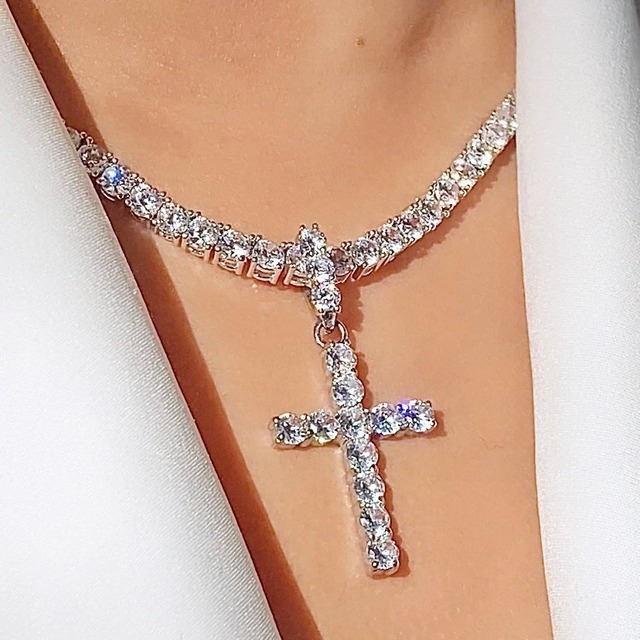 【eggエリカちゃん着】Junk Crystal Cross Tennis ネックレス/SIL