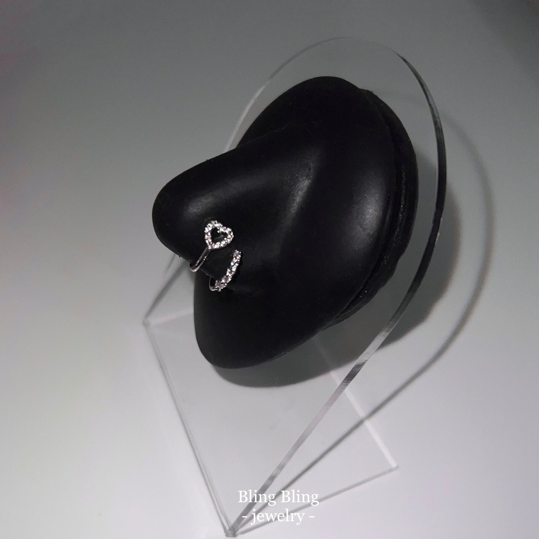 【挟むだけでok!】《AAA CZ diamond》Bling Heart Flaming 鼻ピアス/SIL