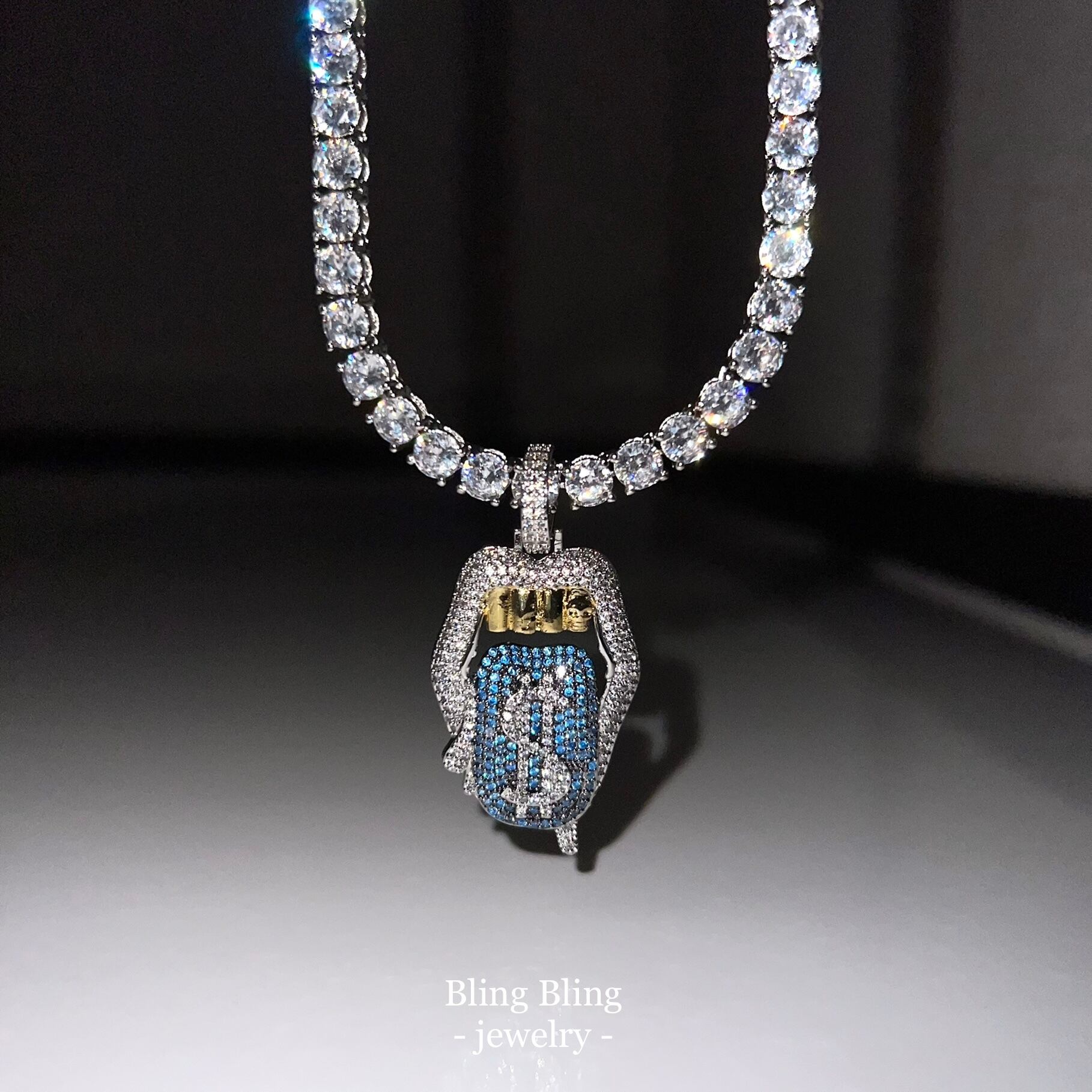 【NATSUMIちゃん着】《AAAAA CZ diamond》LIP $ Tennis ネックレス/BLU