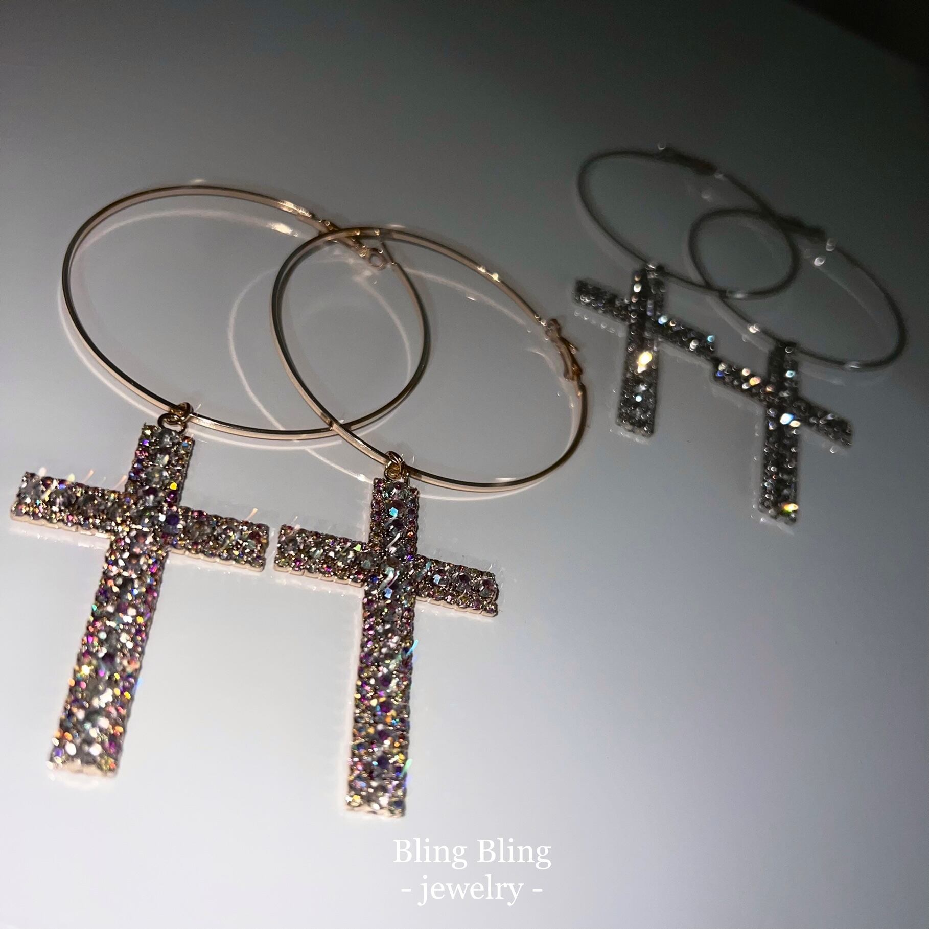 Stand Out Cross Hoop ピアス/SIL