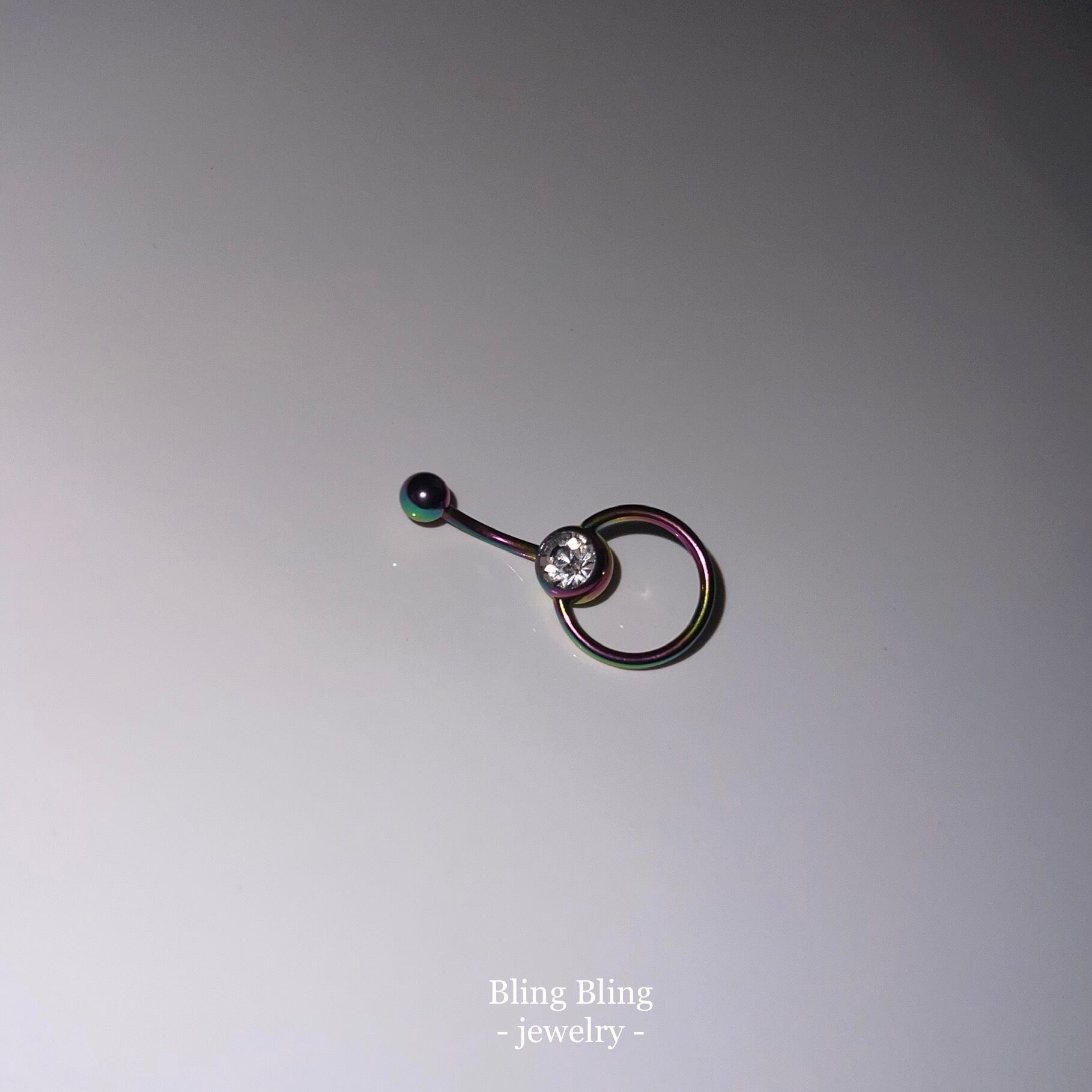 《CZ diamond》Circle Ring Crystal ヘソピアス/MIX
