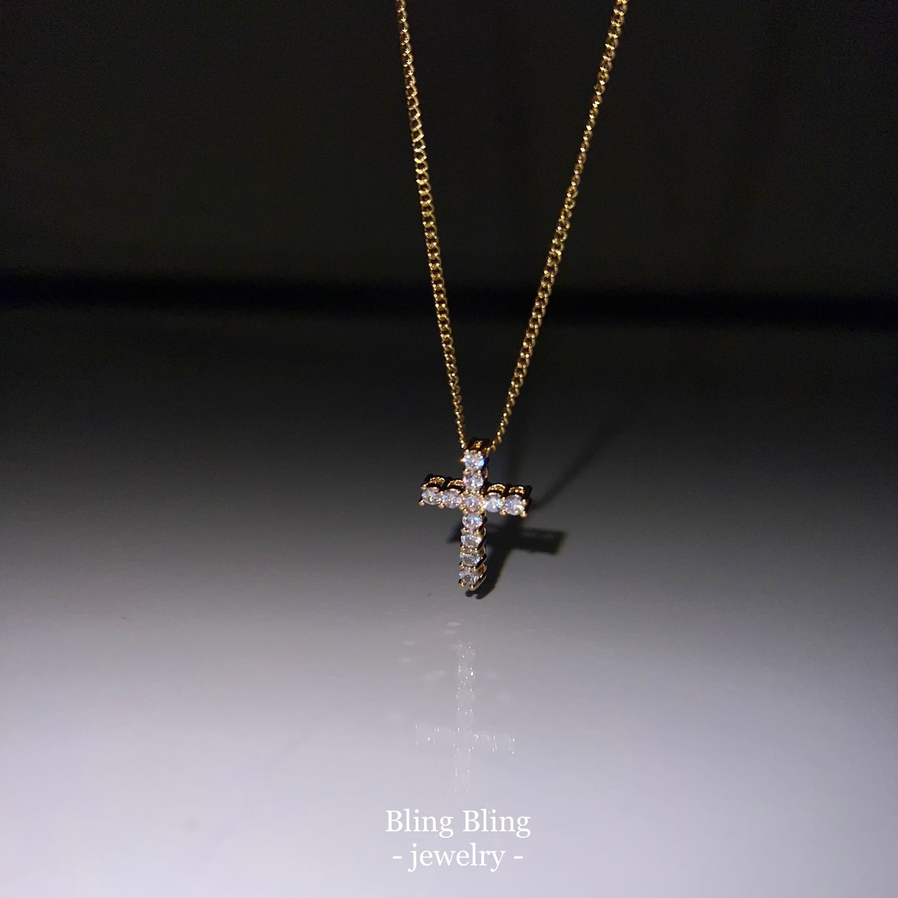 《Stainless|Zircon》Mini ICE Cross ネックレス/GLD