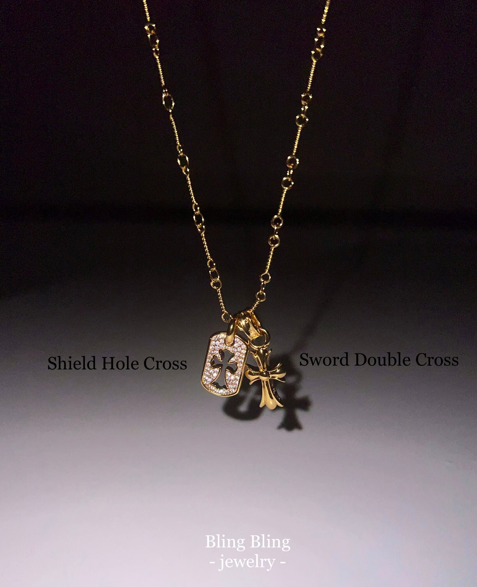 《22kgp|CZ diamond》Sword Double Cross ネックレス