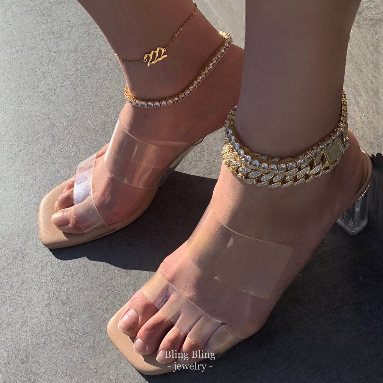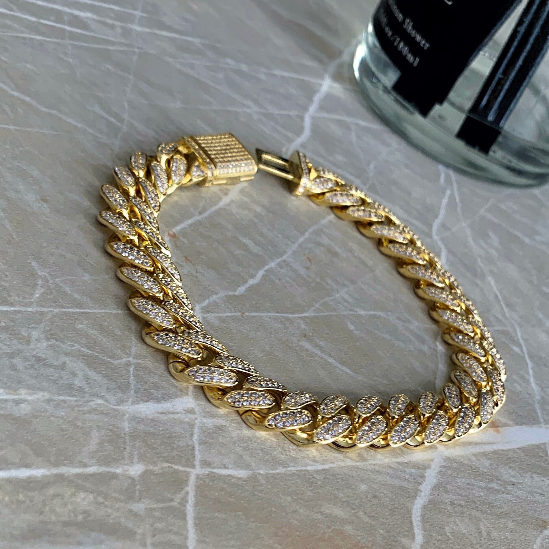 お取り寄せ《AAAAA CZ diamond》Cuban Plump アンクレット/GLD【12MM】